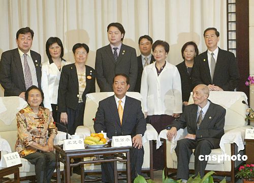 返鄉(xiāng)祭祖的宋楚瑜及家人9日中午在湘潭盤龍山莊與大陸親屬會面。分隔56年的親人一朝相見,不少人都當(dāng)場流下了熱淚。