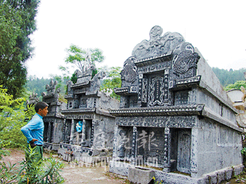 任正芳說,活人墓修建工程是承包給本鄉(xiāng)長安村一個叫馮廣明的工匠師傅,12個石匠一直忙了一年多,她天天在家做飯,前后一共吃了4頭肥豬。2004年舊歷正月間,活人墓建成后要“起轎”辦酒,又殺了兩頭肥豬,一共辦了50多桌,人情費收了4萬多元,縣城和附近鄉(xiāng)鎮(zhèn)都有人趕來朝賀。