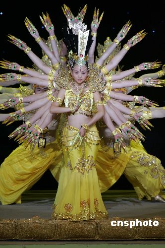 | 五月十九日,二零零五年日本愛知世屆博覽會(huì)中國(guó)館日活動(dòng)隆重舉行。二零零五年日本愛知世博會(huì)中國(guó)館主題為“自然、城市、和諧--生活的藝術(shù)”,中國(guó)館的展出通過博大精深的中國(guó)文化的演繹,表達(dá)了中國(guó)人“天人合一”的哲學(xué)思想。圖為中國(guó)殘疾人藝術(shù)團(tuán)表演的舞蹈“千手觀音”為中國(guó)館日增色。作者:毛建軍