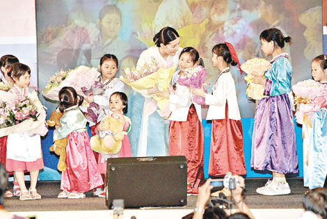 萬眾期待的李英愛,身穿韓服于三時十五分到場,現(xiàn)場觀眾紛紛站起來,搖著手上的紙扇歡迎她,又以韓文高呼“我愛你”。她走紅地氈進場時,除了一直保持笑容,還向觀眾揮手及握手,令觀眾情緒十分高漲。她在后臺逗留了十分鐘,到三時廿五分才上臺,即時以廣東話向現(xiàn)場巿民打招呼:“大家好,你好嗎?我系李英愛。”全場立時歡呼,她繼而用韓文道:“多謝大家在這里,希望大家學(xué)大長今的精神,祝大家健康快樂!彼终f好開心跟大家近距離親密接觸,希望大家繼續(xù)愛她支持她,又以廣東話說:“多謝!多謝!”