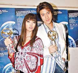 Hit FM從上月15日金曲入圍名單公布后,分就預(yù)測得獎、遺珠名單舉行網(wǎng)路票選,昨電臺公開部分結(jié)果,計21萬人次的投票中,網(wǎng)友心中最佳華語男、女演唱人,正好是緋聞男女王力宏、阿妹;五月天則以近80%得票率獲網(wǎng)友一面倒支持,周杰倫的《七里香》則被選為最佳專輯。