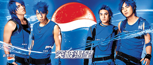而百事發(fā)言人表示,F(xiàn)4剛剛拍完的電視廣告都是戴藍色假發(fā),因為電視畫面是動的,戴假發(fā)都沒問題,但因今次拍硬照質感很細致,他們一定要染發(fā),雖然頭發(fā)會受損,但F4好有專業(yè)精神,從沒怨言。