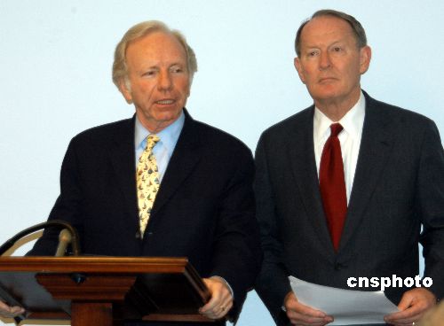 曾在去年競選總統(tǒng)的美國參議員利伯曼(左)與另一名參議員亞歷山大(右),25日聯(lián)合提出旨在促進美中交流的“美中文化接觸法案”議案。他呼吁在國際事務(wù)中視中國為盟友,在商業(yè)活動中待中國為伙伴,加強與中國的接觸和交流,美國才會擁有燦爛的未來。作者:余東暉