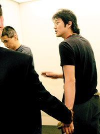 發(fā)布會原定晚上8點半開始,他幾乎踩著點兒到場。他的出現(xiàn)引得眾多攝影記者爭相拍照。一通閃光燈后,不等會議開始他就坐不住了,起身告退。記者尾隨他到電梯門口,看到鏡頭,李亞鵬的眼光起初有些閃躲,隨即無奈地正視著記者,神情十分復(fù)雜。