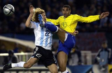 此后,場(chǎng)上火藥味漸濃,兩隊(duì)隊(duì)員頻頻出現(xiàn)肢體沖突,裁判不得不先后出示多張黃牌來(lái)讓雙方冷靜。巴西隊(duì)的進(jìn)攻依然沒(méi)有起色,阿根廷隊(duì)的反擊確實(shí)非常具有威脅性。第39分鐘,阿根廷隊(duì)兩名前鋒克雷斯波和薩維奧拉配合,后者將球傳中,克雷斯波在羅克-儒尼奧爾盯防下頭球一蹭,皮球應(yīng)聲入網(wǎng)。比分被擴(kuò)大為3比0。