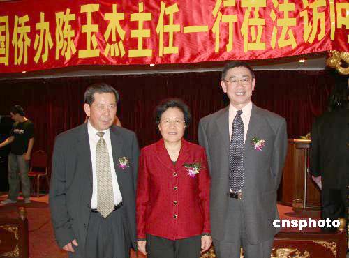 當(dāng)?shù)貢r(shí)間6月9日,法國各界僑團(tuán)在巴黎新世界中國城舉行盛大歡迎儀式,歡迎國務(wù)院僑辦主任陳玉杰一行訪問法國。圖為陳玉杰(中)同中國駐法大使趙進(jìn)軍(右一)和法國華僑華人會(huì)主席林德彪在一起。作者:鐘誠