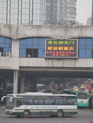 圖:重慶市繁華地段朝天門掛市長峰會倒計時牌