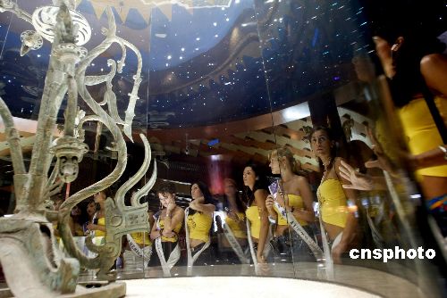 六月十五日,二○○五國際旅游小姐冠軍總決賽的來自七十五個國家和地區(qū)的旅游形象大使,來到四川省廣漢市,參加二○○五中國四川三星堆國際旅游文化節(jié)暨二○○五國際旅游小姐最具魅力小姐冠軍大賽決賽,各國旅游小姐在參觀三星堆博物館時,被古蜀文明深深吸引。圖為各國佳麗在三星堆博物館館藏文物“神樹”前流連忘返。作者:盛佳鵬