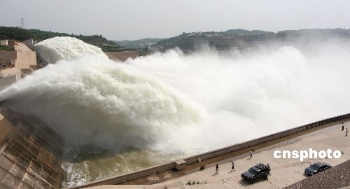 | 6月16日,黃河小浪底再現(xiàn)“巨龍騰飛”盛景,小浪底水庫首次正式調水調沙開始。2005年是小浪底水庫連續(xù)3年調水調沙試驗后第一次正式進行調水調沙,這標志著調水調沙作為黃河治理開發(fā)與管理的常規(guī)措施正式轉入生產應用。據(jù)介紹,本次調水調沙生產運行,為期15天至20天。其間,水庫平均下泄流量為每秒2900立方米,最大下泄流量每秒3500-4000立方米,庫水位下降27米左右。此次平均下泄流量是歷年來最大的一次。作者:張曉理