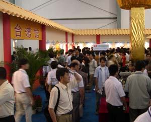 臺灣館300平方米,主要突出福建省三大主導(dǎo)產(chǎn)業(yè)中閩臺產(chǎn)業(yè)合作成果,并重點(diǎn)推出汽車產(chǎn)業(yè)項目1個、石化產(chǎn)業(yè)項目1個、信息產(chǎn)業(yè)項目97個;突出臺灣廠商項目推介和閩臺科技合作成果推介,共推出5家臺灣廠商10個項目成果、7個閩臺科技合作成果;突出閩臺農(nóng)業(yè)合作成果的“臺灣農(nóng)民創(chuàng)業(yè)園”,共展出30余種的“臺灣農(nóng)民創(chuàng)業(yè)園”產(chǎn)品。如:福建夢龍食品有限公司與臺灣霖澤企業(yè)集團(tuán)公司對接的臺農(nóng)1號黃花菜生產(chǎn)加工項目,總投資6500萬元,產(chǎn)值達(dá)1.5億元;福建省神蜂科技開發(fā)有限公司、福建農(nóng)林大學(xué)蜂療研究所與臺灣鴻天國際股份有限公司對接的蜂蜜粉生產(chǎn)及果蔬粉生產(chǎn)加工項目,總投資6000萬元,產(chǎn)值達(dá)3億元等。