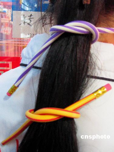| 6月19日,在南京一家時(shí)尚用品商店里,一款名為“百變不斷”的新型鉛筆十分引人注目。據(jù)介紹,這種新型鉛筆采用國外最新工藝制作,筆長約40厘米,筆芯使用效果相當(dāng)于2B的普通鉛筆。該鉛筆即可實(shí)用,也可作為裝飾,柔度很高,可以隨意彎曲打結(jié),還可扎在女孩的辮子上。作者:孫忠南