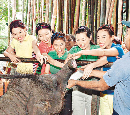 準(zhǔn)港姐于斯里蘭卡的拍攝工作進(jìn)行得如火如荼,昨日佳麗們被安排往探訪“大象孤兒院”。眾佳麗一見大象都表現(xiàn)得十分雀躍,更爭相向大象喂奶,不過鄧上文和大象合照時,竟被大象撩腳,嚇得她馬上彈開。事后鄧上文坦言當(dāng)時很害怕,因怕大象會吸走她的鞋。但鄧上文仍然表示這次體驗十分有趣。