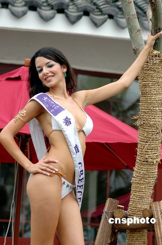 六月二十二日,參加國(guó)際旅游小姐最佳民族服裝冠軍大賽的七十五位佳麗在“中國(guó)第一水鄉(xiāng)”古鎮(zhèn)周莊奉獻(xiàn)了一場(chǎng)比基尼泳裝秀,盡情展示她們大膽、外向的美麗。作者:蔣振江
