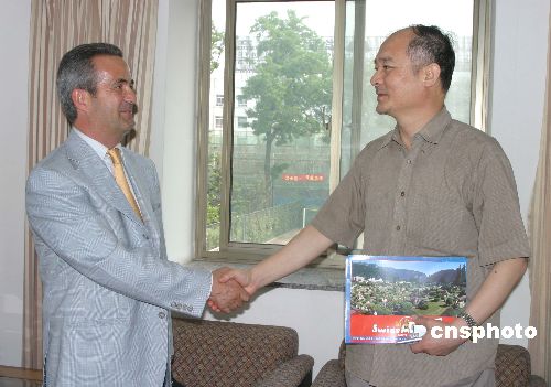 6月23日,國(guó)務(wù)院僑辦副主任趙陽(yáng)會(huì)見(jiàn)瑞士提起諾州美利德市“微縮瑞士”公園園長(zhǎng)Dominique Vuigner先生。中國(guó)深圳著名的“錦繡中華”公園與已有五十年歷史的瑞士提州“微縮瑞士”,通過(guò)國(guó)僑辦介紹結(jié)成友好園區(qū),將開(kāi)展中瑞微縮景區(qū)建設(shè)、工藝、管理及旅游方面的交流與合作。作者:田地