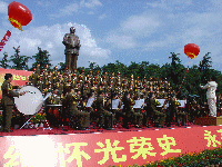 中新社長(zhǎng)沙六月二十五日電(鄧霞周海清)為紀(jì)念毛澤東親手創(chuàng)建中共韶山特別支部八十周年,大型音樂(lè)舞蹈史詩(shī)《東方紅》交響合唱音樂(lè)會(huì),今日在毛澤東的家鄉(xiāng)湖南韶山進(jìn)行首次實(shí)景演出。四千余人在毛澤東銅像下聆聽那些傳唱了半個(gè)世紀(jì)的熟悉的經(jīng)典旋律。