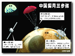 2004年2月,國(guó)防科學(xué)工業(yè)委員會(huì)領(lǐng)導(dǎo)對(duì)外宣稱:中國(guó)月球探測(cè)計(jì)劃已經(jīng)進(jìn)入實(shí)施階段,將分“繞”、“落”、“回”三步。