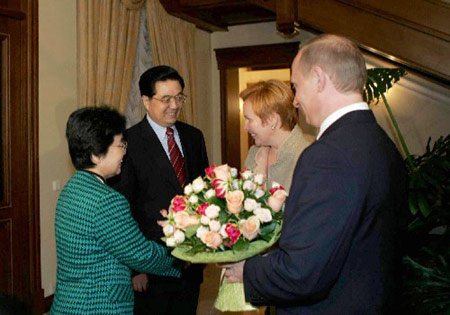 中新社莫斯科六月三十日電(記者齊彬)當(dāng)?shù)貢r(shí)間六月三十日晚,中國國家主席胡錦濤和夫人劉永清出席了普京總統(tǒng)夫婦專門為他們到訪在莫斯科郊外總統(tǒng)別墅舉行的家宴。