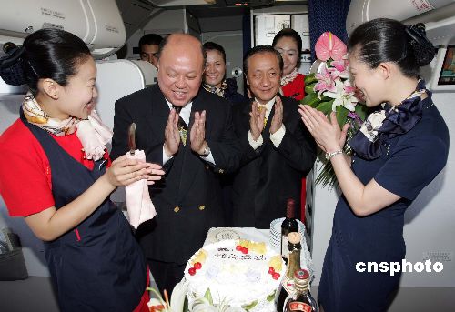 新黨大陸訪問團今天上午從大連乘坐中國南方航空公司班機前往北京。在飛機上升到七千八百米的高空時,南航機組的空中小姐將事先準(zhǔn)備好的生日蛋糕送到李勝峰道面前,在眾人的歡呼聲中,新黨主席郁慕明向李勝峰祝賀生日。李勝峰在記者的請求下大聲說出自己的生日心愿:訪問成功。