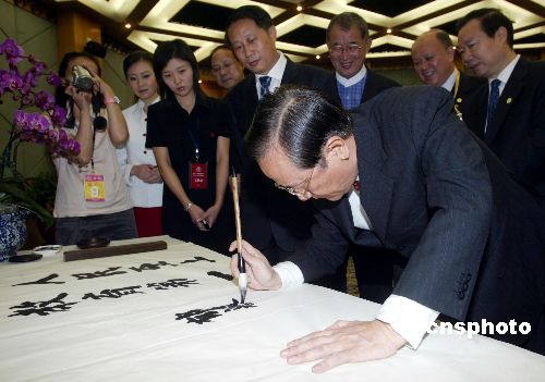郁慕明在北京為中國人民大學題詞“人民至上,教育為本”。作者:史利