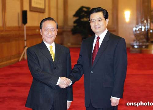 中新網(wǎng)北京7月12日電(記者邢利宇)自人民大會(huì)堂現(xiàn)場報(bào)道:今天下午三時(shí)許,中共中央總書記胡錦濤在人民大會(huì)堂會(huì)見了由新黨主席郁慕明率領(lǐng)的新黨紀(jì)念抗戰(zhàn)勝利六十周年大陸訪問團(tuán)。(完)