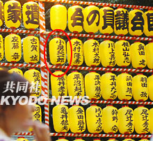 中新網(wǎng)7月15日電 據(jù)日本共同社報(bào)道,日本首相小泉純一郎為從13日開始的靖國神社主辦的廟會(huì)供奉了1萬日元的燈籠費(fèi),寫有小泉名字的燈籠懸掛在廟會(huì)上。