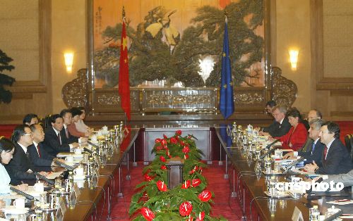 圖:溫家寶與歐盟委員會(huì)主席巴羅佐舉行會(huì)談