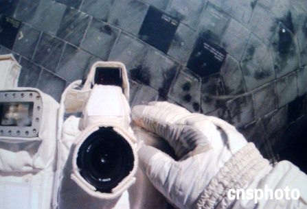 發(fā)現(xiàn)號(hào)宇航員羅賓遜歷史性的自拍照,鏡頭后面是修復(fù)一新的航天飛機(jī)腹部。作者:羅賓遜