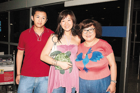 肥姐前晚坐輪椅由機(jī)場(chǎng)人員推出抵港大堂,欣宜緊隨其后,李寶麟則負(fù)責(zé)推行李,盡顯男士風(fēng)度,肥姐一出閘眼見(jiàn)有記者即面露不悅,她坦言﹕“好不開(kāi)心,整個(gè)行程都被人(狗仔隊(duì))跟住﹗”眾人隨即步往停車(chē)場(chǎng),欣宜和男友十指緊扣,顯然經(jīng)過(guò)新加坡之行,兩人感情又更進(jìn)一步。