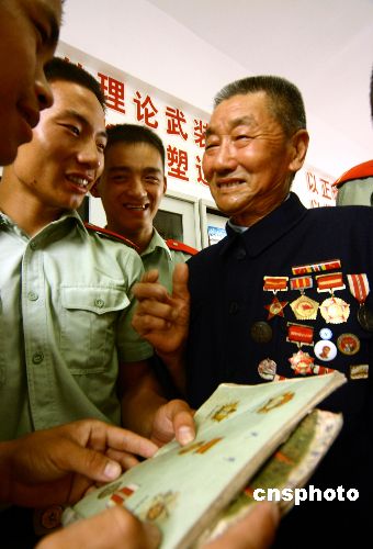 | 為紀(jì)念“8·15”抗戰(zhàn)勝利60周年,武警江蘇總隊(duì)所屬各部隊(duì)紛紛開(kāi)展形式多樣的紀(jì)念活動(dòng)。8月14日,江蘇泰州市支隊(duì)邀請(qǐng)江堰市溱潼鎮(zhèn)湖北口村戰(zhàn)功卓著的老英雄田春富來(lái)隊(duì)做報(bào)告,聽(tīng)老人家娓娓訴說(shuō)當(dāng)年戰(zhàn)場(chǎng)經(jīng)歷,戰(zhàn)士們被深深地吸引住了!作者:唐占軍
