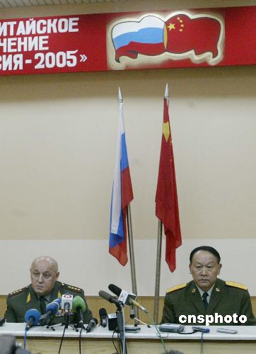 中俄兩國(guó)五六十名記者參加了此次記者招待會(huì)。中俄兩軍總參謀長(zhǎng)分別介紹了參加“和平使命-2005”中俄聯(lián)合軍事演習(xí)部隊(duì)的基本情況。