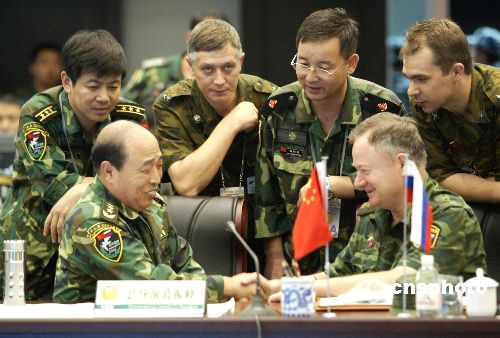 8月20日上午,“和平使命——2005”中俄聯合軍事演習第二階段——戰(zhàn)役籌劃階段在中國青島開始。中俄軍事演習第二階段從二十日至二十二日,主要的課目是從戰(zhàn)役的層面做好戰(zhàn)役的協(xié)同工作。作者:王麗南