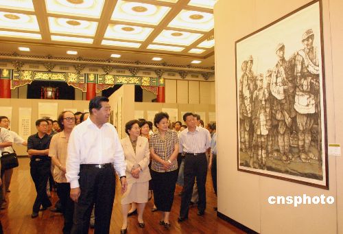 “紀念中國人民抗日戰(zhàn)爭勝利六十周年美術作品展”八月二十三日在北京全國政協(xié)禮堂開幕。全國政協(xié)主席賈慶林、全國人大常委會副委員長、民革中央主席何魯麗等出席開幕式并參觀了展覽。展覽的主題是“以史為鑒,面向未來;毋忘國恥,振興中華”,展出作品百余幅。作者:張勤