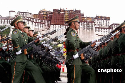 圖:西藏自治區(qū)成立四十周年游行彩排在拉薩舉行