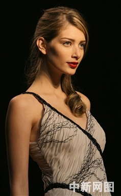 2006年2月14日,倫敦時(shí)裝周在倫敦自然歷史博物館開(kāi)幕。圖為模特在時(shí)裝周開(kāi)幕第一天展示設(shè)計(jì)師Amanda Wakeley的作品。