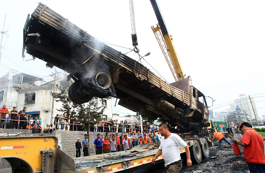 7月6日,烏魯木齊市的工作人員在清理被犯罪分子焚燒的汽車。在5日晚發(fā)生的嚴(yán)重暴力犯罪事件中,已造成140人死亡,800多人受傷;被毀車輛達(dá)260部;受損門面房203間,民房14間,總過火面積達(dá)到56850平方米,全市共有220多處縱火點,有兩棟樓房被燒毀。中新社發(fā) 劉新 攝