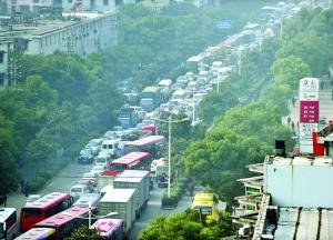 11月5日,南昌市青山南路一處加油站,大量的車輛排成長隊等待加柴油,造成了該路段出現(xiàn)嚴(yán)重擁堵。本報傳真圖