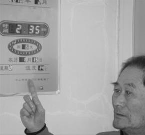 昨日下午,記者來(lái)到居民寧大爺家,南屋點(diǎn)著電暖器,溫度計(jì)上顯示的溫度只有零上14度,記者摸了一下暖氣,冰涼。
