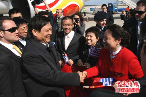 當(dāng)?shù)貢r(shí)間29日下午14時(shí)45分(北京時(shí)間晚上20時(shí)45分),中共中央政治局委員、北京市委書(shū)記、北京奧組委主席劉淇率北京奧運(yùn)圣火交接儀式代表團(tuán)乘坐北京2008奧林匹克火炬接力包機(jī)“和諧之旅”號(hào)抵達(dá)雅典,出席于30日下午在這里舉行的北京奧運(yùn)會(huì)圣火交接儀式。(中希時(shí)報(bào) 汪鵬攝)