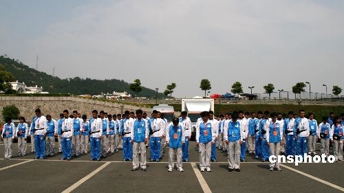 5月19日14時(shí)28分,北京奧運(yùn)會(huì)火炬接力運(yùn)行團(tuán)隊(duì)的所有成員,為四川汶川大地震遇難者默哀三分鐘,火炬運(yùn)行車(chē)隊(duì)鳴笛致哀。 中新社發(fā) 周兆軍 攝