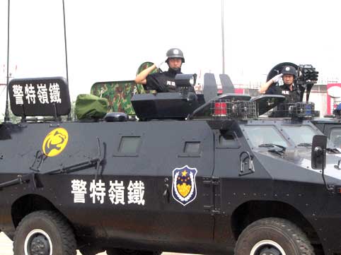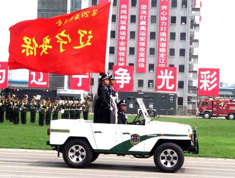 出警儀式上,遼寧省公安廳、沈陽(yáng)軍區(qū)、遼寧省武警總隊(duì)等單位進(jìn)行了力量集結(jié)拉動(dòng)展示。1326名隊(duì)員齊聲高呼著口號(hào),迅速開(kāi)始登車。寬闊的跑道上警燈閃爍,精神飽滿的公安特警方隊(duì),整齊威武的武警持槍方隊(duì),軍容嚴(yán)整的人民解放軍方隊(duì)以及由特種裝備車、輕型裝甲車、運(yùn)兵車、照明車、防化車、特種偵察車、炊事車、特戰(zhàn)車、防彈車、突擊沖鋒車、水炮車、宿營(yíng)運(yùn)兵車、裝甲運(yùn)兵車、防核生化車等119臺(tái)車輛組成的共26支方隊(duì)依次通過(guò)主席臺(tái),經(jīng)過(guò)市區(qū)主要街路,駛往沈陽(yáng)奧體中心。