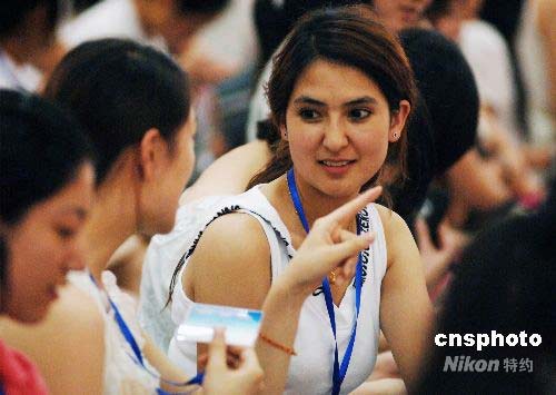 名少數(shù)民族志愿者在北京參加奧運頒獎儀式培訓開班儀式。中新社發(fā) 王東明 攝