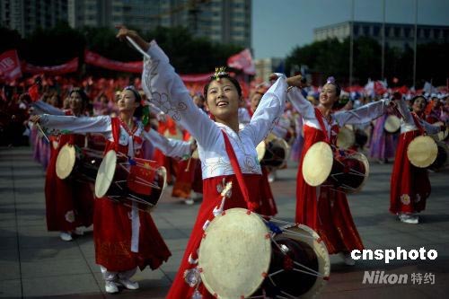 圖:長春姑娘舞起長鼓迎接奧運圣火