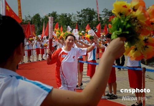 圖:速滑健將王春露任長春火炬?zhèn)鬟f末棒