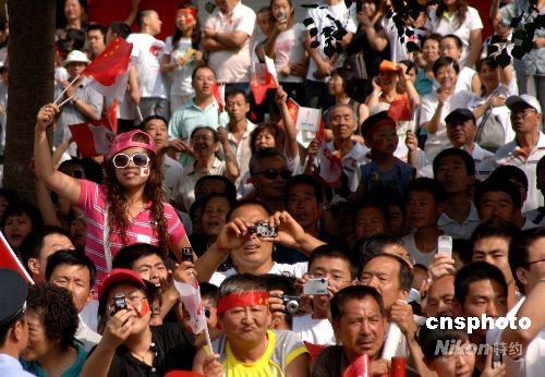圖:長春市民熱情迎接奧運(yùn)圣火