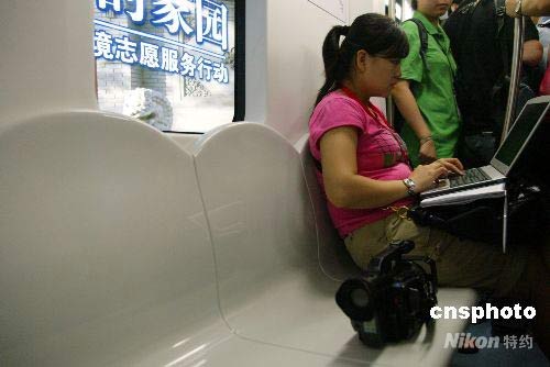 據(jù)地鐵工作人員介紹,地鐵10號(hào)線新車的座椅靠背升高了15到20厘米,而且是圓弧形的,乘客乘坐起來將更加舒適。中新社發(fā) 富田 攝