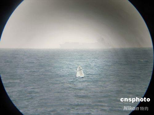 7月中旬,攝影者通過(guò)賽場(chǎng)里觀眾使用的望遠(yuǎn)鏡遠(yuǎn)眺青島奧帆賽場(chǎng)運(yùn)動(dòng)員訓(xùn)練。 中新社發(fā) 廖攀 攝