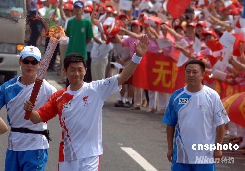 7月21日,奧運火炬在山東青島傳遞,影星夏雨擔任火炬手傳遞火炬。 中新社發(fā) 廖攀 攝