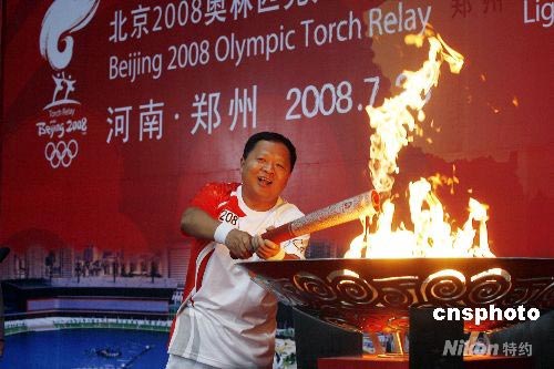 7月25日,中國(guó)工程院院士、中國(guó)信息與通信工程專家、解放軍信息工程大學(xué)校長(zhǎng)鄔江興點(diǎn)燃圣火盆,奧運(yùn)火炬在鄭州的傳遞正式結(jié)束。 中新社發(fā) 慎重 攝