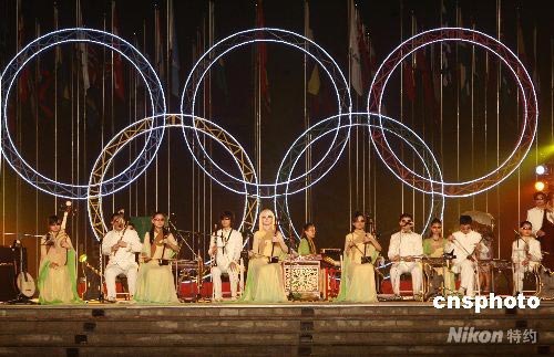 7月31日晚,中國(guó)殘疾人藝術(shù)團(tuán)冒雨在奧運(yùn)村表演《我的夢(mèng)》,吸引不少運(yùn)動(dòng)員觀看。據(jù)悉,中國(guó)殘疾人藝術(shù)團(tuán)將在北京殘奧會(huì)開(kāi)、閉幕式上進(jìn)行表演。 中新社發(fā) 武仲林 攝