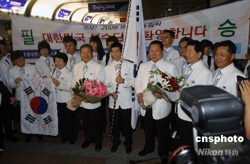 8月1日,由54名官員、教練、運(yùn)動(dòng)員組成的首批韓國(guó)代表團(tuán)飛抵北京首都機(jī)場(chǎng)。韓國(guó)代表團(tuán)總?cè)藬?shù)為389名,其中運(yùn)動(dòng)員267名,官員、教練等122名。運(yùn)動(dòng)員中男運(yùn)動(dòng)員160名,女運(yùn)動(dòng)員107名,他們當(dāng)中有七成第一次參加奧運(yùn)會(huì)。 中新社發(fā) 劉新 攝